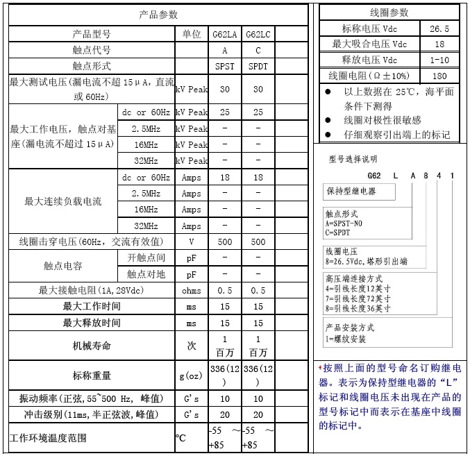 保持型线圈,使继电器在无电源输入时保持继电器的状态。 紧凑的设计,耐压达到25KV而体积很小。 耐高压引线设计,方便连接。 真空介质,适合于负载开关。 负载开关应用请向厂家咨询。