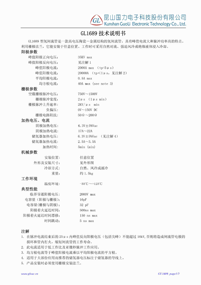 氢闸流管GL1689 下载