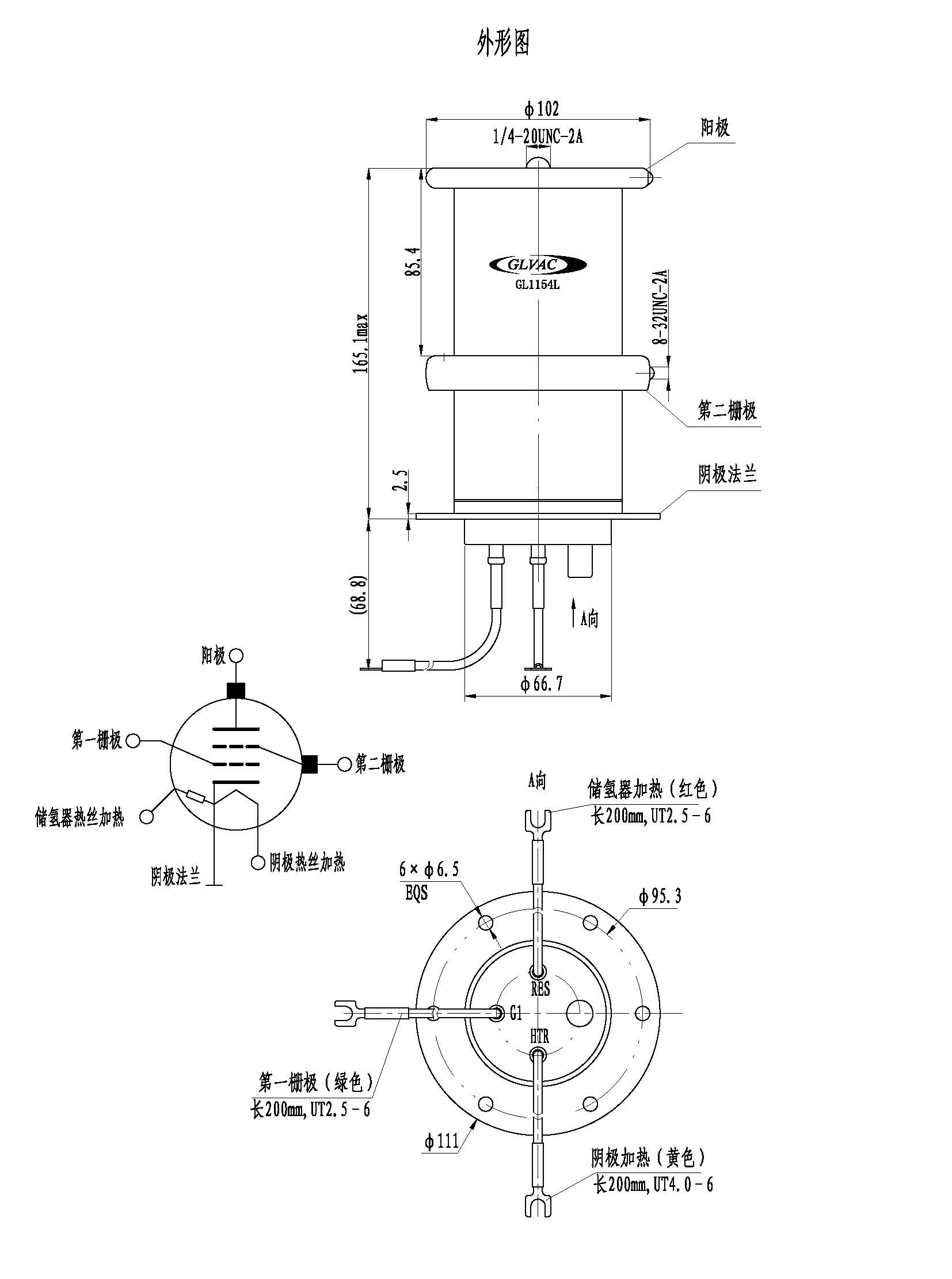 闸流管电极接线示意图