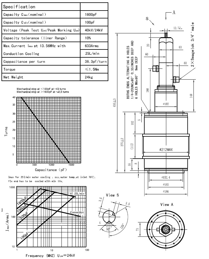 可变真空电容器产品列表 您现在的位置:首页 >> 产品介绍 >> 可变真空电容器CKTBS1600/28/790