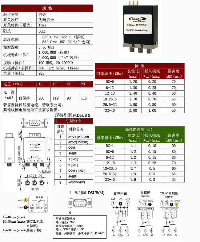 射频同轴继电器列表