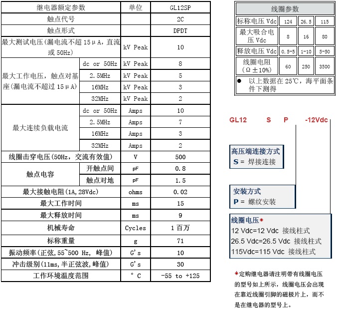 陶瓷高压真空继电器GL12SP 下载