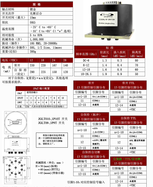 射频同轴继电器JGLT010T-K26-常开或自保持 下载