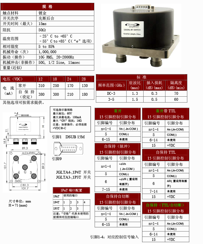 射频同轴继电器JGLTA4-C05-常开或自保持 下载