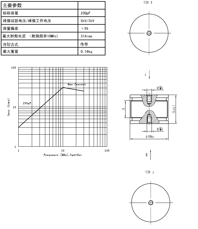 CKT230/3.5/31固定陶瓷高压真空电容器采用陶瓷外壳、真空介质、具有耐压高、体积小、Q值高、性能稳定可靠广泛用于感应加热、介质加热、通讯、广播等设备。