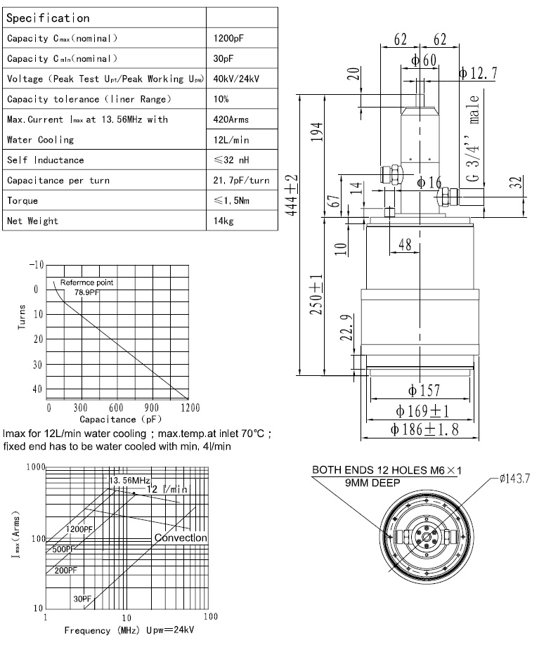 可变真空电容器产品列表 您现在的位置:首页 >> 产品介绍 >> 可变真空电容器CKTBS1200/40/420